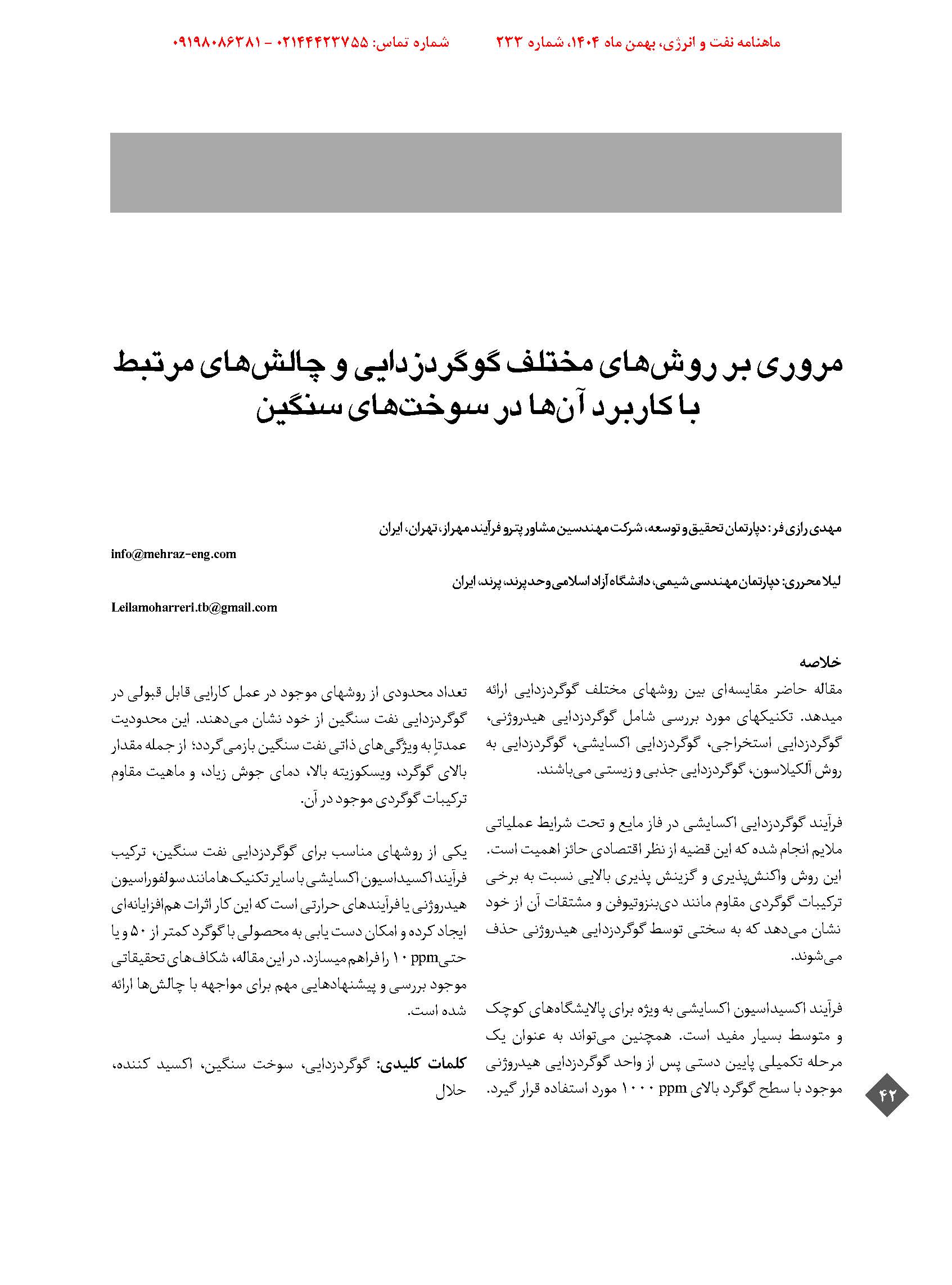 6. فرآيند سولفورزدايی از محصولات نفتی