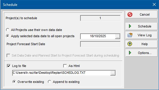 در زمانیکه در برنامه زمانبندی، بین فعالیت ها out of sequence اتفاق می افتد، نرم افزار Primavera P6 آن را در گزارش Schedule Log نشان می دهد، بگونهایکه با انتخاب گزینه F9 (Schedule) و زدن تیک Log to file و انجام Schedule ، با انتخاب گزینه View Log در قسمت Errors قابل مشاهده خواهند بود.