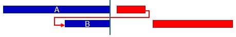 در هنگام Out of sequence در فاز اجرا بر خلاف رابطه FS تعریف شده در فعالیتها، قبل از پایان کامل فعالیت پیش نیاز A ، فعالیت پسنیاز B آغاز می شود.